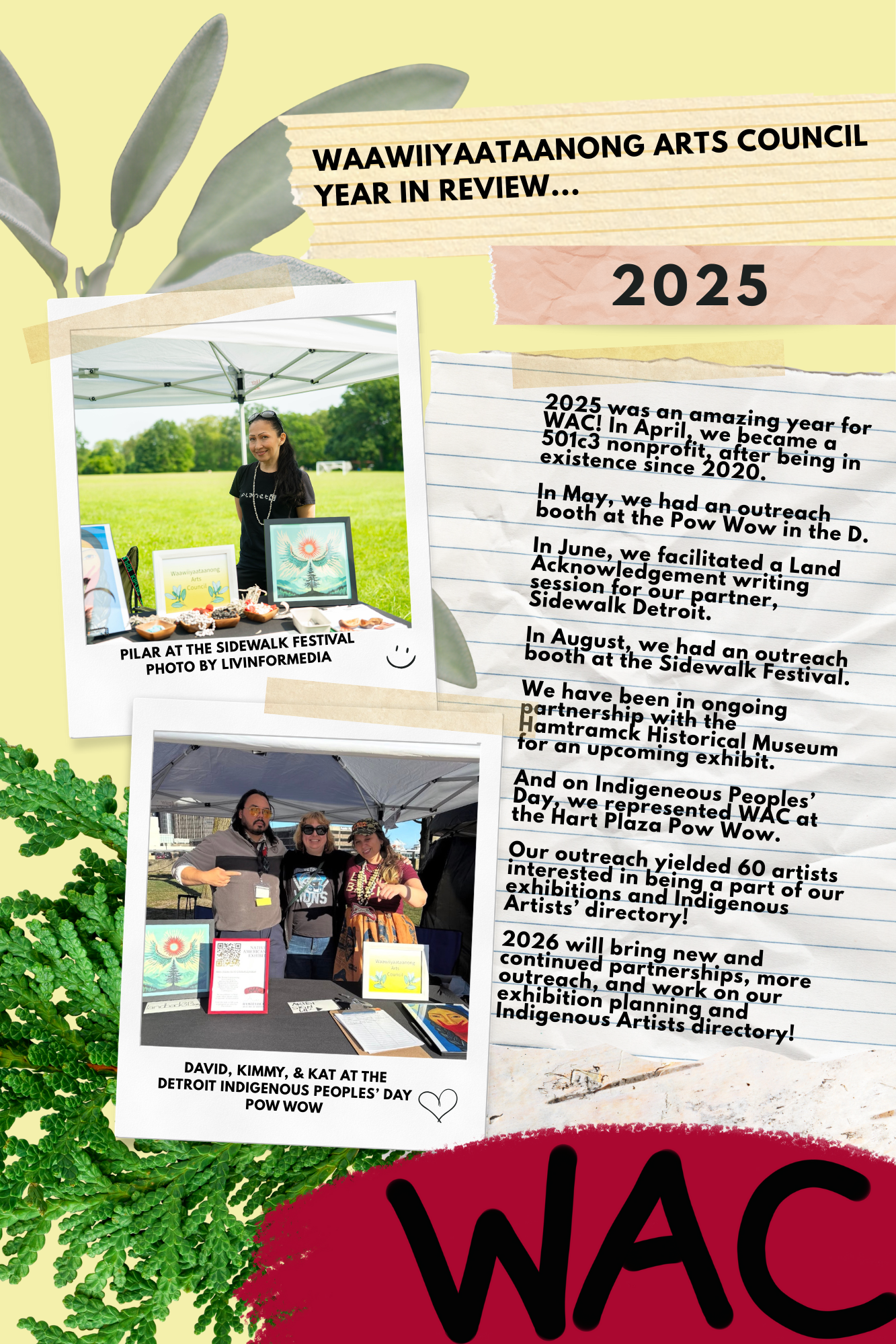 The Waawiiyaataanong Arts Council is a group of artists, activists, cultural workers, and community organizers with many intersectional identities that centers Indigenous and Black voices. The Waawiiyaataanong Arts Council exists to facilitate the collective liberation of all, through advocating for the repatriation of all Indigenous land and life, and by enacting new forms of kinship and reciprocal relation among all of the inhabitants of what is currently called North America.